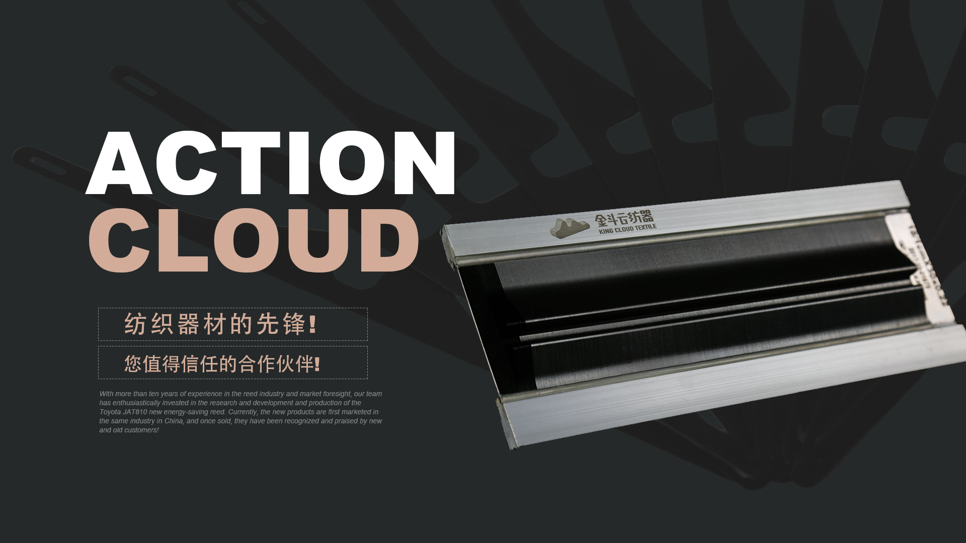 憑借十多年鋼筘行業(yè)經(jīng)驗(yàn)及對(duì)市場(chǎng)的前瞻性,我們團(tuán)隊(duì)滿(mǎn)懷熱情的投入到豐田JAT810新型節(jié)能鋼筘的研發(fā)和生產(chǎn)當(dāng)中,目前新產(chǎn)品在國(guó)內(nèi)同行業(yè)中先行上市銷(xiāo)售,一經(jīng)銷(xiāo)售就得到了新老客戶(hù)的認(rèn)可和好評(píng)!